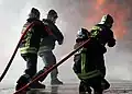 - Tenue de feu : Cette tenue est utilisée lors des incendies ou des accidents de la route, elle est composée d'une paire de gants d'attaque, d'un casque, d'une cagoule, d'une veste de feu et d'un sur-pantalon.
