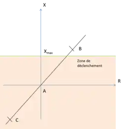 La protection de distance tente de faire la distinction entre impédance de défaut et impédance de charge. Il faut donc définir, une limite, une frontière entre les impédances que la protection va considérer comme normales, de charge et celles anormales associées à un défaut. Cette limite est appelée ici caractéristique de déclenchement. Elles peuvent avoir plusieurs formes et sont représentées dans un plan résistance - inductance : RX.