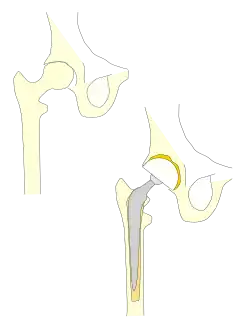 • En 2001, le nombre de prothèse totale de hanche (PTH) était estimée à 100 000 par an[8]