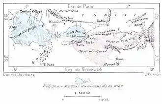- ↑ https://www.google.com/maps/place/Chott+el-J%C3%A9rid/@33.9799593,7.0667297,9z/data=!4m5!3m4!1s0x1257b06eeca32ae9:0x101418449e20907f!8m2!3d33.7782167!4d8.3964936