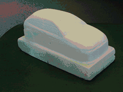 - le frittage laser, dans un bac de plastique en fine poudre et le fritte (on parle de frittage sélectif, fusion des grains de cette poudre plastique, sigle SLS en anglais).