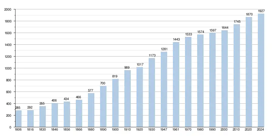 - Source : Statbel - Remarque: 1806 jusqu'à 1970=recensement; depuis 1971=nombre d'habitants chaque 1er janvier[1]