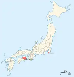 - la province d'Awa (阿波国) sur l'île de Shikoku, qui fait partie de l'actuelle préfecture de Tokushima.