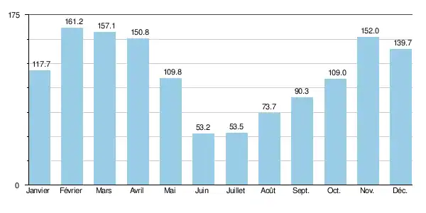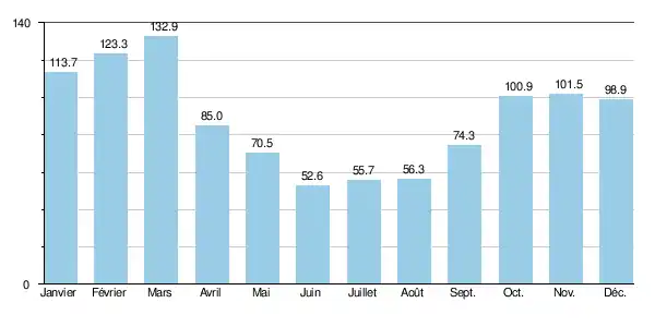 | Mois | jan. | fév. | mars | avril | mai | juin | jui. | août | sep. | oct. | nov. | déc. | année |