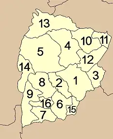 Chaiyaphum est subdivisée en 16 districts (amphoe) : Ces districts sont eux-mêmes subdivisés en 124 sous-districts (tambon) et 1 393 villages (muban).
