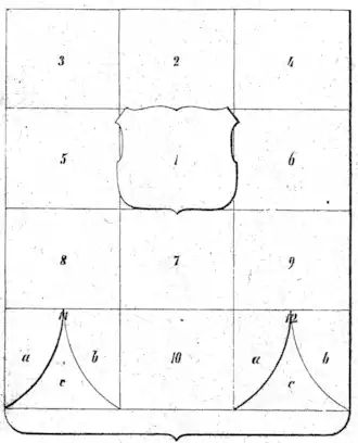 En vertu de l'annexe A, reproduite ci-après, de l'ordonnance précitée du , les grandes armoiries du royaume de Prusse (en allemand : Großes Wappen Preußens) comportaient les armoiries du langraviat de Hesse (en 25), des principautés de Fulde (en 40) et de Nassau (en 41) ainsi que de la seigneurie de Francfort (en 51).