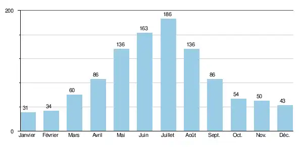 - ↑ À titre de comparaison : 636 mm à Paris et 820 mm à Bruxelles