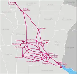 De plus, la route nationale 34, partie de Rosario, remonte vers le nord, assez parallèlement à la RN 11, mais plus à l'ouest, en direction de Santiago del Estero et du grand nord-ouest argentin.