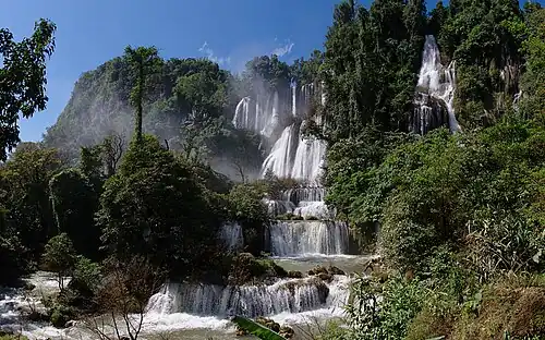 - Sanctuaire de faune de Umphang qui abrite Thi Lo Su (Thai: ทีลอซู), la plus grande cascade de Thaïlande, haute de près de 200-250 m et large de 400-450 m[2],[3], 2,590 km2
