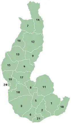 La province compte quatre régions (faritra) et vingt-et-un districts (fivondronana):