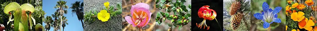 Comme les quatre autres régions méditerranéennes (Bassin méditerranéen, Afrique du Sud, Chili et Australie) cette région possède une concentration extrême d'espèces végétales avec un endémisme très élevé. On dénombre 18 743 espèces végétales cataloguées aux États-Unis, près d'un cinquième sont présentes dans cette zone[2], soit 3488 espèces de plantes vasculaires dont 2124 ne sont présentes nulle part ailleurs soit un endémisme de 61 %. La province floristique de Californie compte donc plus de 18 % des plantes vasculaires des États-Unis pour seulement 3 % du territoire. Quatre régions dans cette zone se distinguent pour leur biodiversité exceptionnelle : la sierra Nevada, les Transverse Ranges au sud de la Californie, le Klamath-Siskiyou, un massif montagneux côtier entre la Californie et l'Oregon, ainsi que les chaînes côtières du Pacifique. Le Klamath-Siskiyou supporte l'une des forêts tempérées de conifères les plus riches du monde[3]. Parmi ces conifères croissent deux espèces de séquoias : le Séquoia à feuilles d'if (Sequoia sempervirens), le plus grand arbre du monde en moyenne et le Séquoia géant (Sequoiadendron giganteum), l'organisme le plus massif du monde. De plus les sols dominés par de la serpentine produisent un substrat pauvre mais paradoxalement très riche en espèces : on estime que 10 % des plantes endémiques à la province floristique de Californie y vivent[4].
