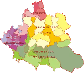 Une prowincja (pluriel : prowincje), ou province, était la plus grande division administrative de la Pologne, puis de la république des Deux Nations. L'histoire de ces « provinces » remonte à la période de la fragmentation de la Pologne (1138-1295) : la Petite et la Grande-Pologne étaient deux provinces non-contigües dont avait hérité le roi Casimir III en montant sur le trône[1], et à qui il avait octroyé des statuts particuliers (en) en 1347[2]. Leur origine remontait au testament du roi Boleslas III Bouche-Torse, qui avait partagé la Pologne à sa mort en 1138 en plusieurs provinces. Au moment de l'union de Lublin en 1569, la République des Deux Nations en comptait trois :