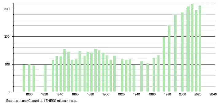 - ↑ Fiches Insee - Populations de référence de la commune pour les années 2006, 2007, 2008, 2009, 2010, 2011, 2012, 2013, 2014, 2015, 2016, 2017, 2018, 2019, 2020, 2021 et 2022.