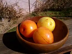 Une prune citron est un fruit comestible rare importé du Chili. La prune citron a d'abord été cultivée en Israël ; les variétés ont été transportées au Chili, où cette prune sucrée est maintenant cultivée et exportée.