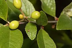 Ses feuilles sont étroites, ovales, jaune-vert et dentelées. Elles mesurent de deux à huit centimètres de long.