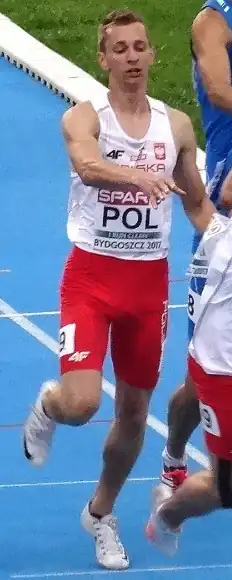 Le , il court le 400 m en 47 s 25 à Toruń. En salle, son meilleur temps est de 47 s 21, toujours à Toruń, le . Le , il remporte le titre continental du relais 4 x 400 m lors des Championnats d'Europe de Belgrade, avec ses coéquipiers Kacper Kozłowski, Łukasz Krawczuk et Rafał Omelko, en 3 min 6 s 99.