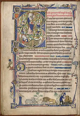 Début du psautier, lettrine de l'arbre de Jessé, f.7v