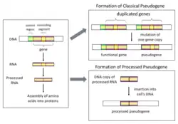 Les pseudogènes peuvent être classés en trois différents types en fonction de leur origine[12].