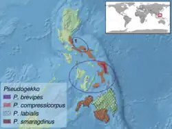 - Pseudogekko sumiklab Siler, Davis, Watters, Freitas, Griffith, Binaday, Lobos Amarga & Brown, 2017