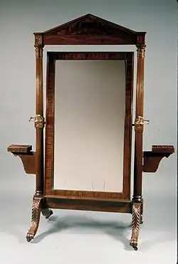 Ce meuble était très en vogue dans les années 1920 et 1930. Les psychés que l'on peut trouver de nos jours sont généralement de style Art déco.