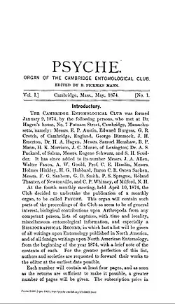 Psyche est une revue fondée en 1874 par le Cambridge Entomological Club. Elle se définissait comme une « revue publiant les contributions de toute personne compétente dans la biologie des Arthropodes »[1].
