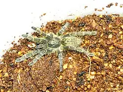 C'est une mygale de taille moyenne. La femelle peut atteindre environ 15 centimètres ce qui est un peu plus que la taille maximale du mâle qui dépasse rarement les 10 centimètres. Elle est de couleur grise à l'âge adulte. L'abdomen est tacheté d'un gris plus foncé. Les spécimens plus jeunes sont par contre de couleur brun-doré, couleur qui changera à mesure que la mygale mue.
