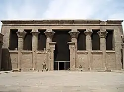 Ptolémée III a financé de nombreux projets de construction de temples à travers l'Égypte. Le plus important d'entre eux est le temple d'Horus à Edfou, l'un des chefs-d'œuvre de l'architecture des temples égyptiens antiques et le mieux conservé de tous les temples égyptiens[17]. Le roi entame sa construction le Les travaux se sont poursuivis pendant une partie de l'époque ptolémaïque : le temple principal a été achevé sous le règne de Ptolémée IV en 231, le complexe complet n'étant achevé qu'en 142. D'autres travaux de construction ont eu lieu sur divers sites, notamment (du nord au sud)[17] :