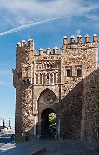 La Puerta del Sol est une porte fortifiée de style mudéjar située à Tolède, ville de la communauté autonome de Castille-La Manche en Espagne.