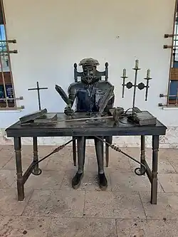 Le patrimoine artistique de Puerto Lápice est essentiellement littéraire et lié à Don Quichotte, roman de Cervantes paru en 1605. L'auteur y situe notamment, en début de son œuvre, l'épisode rocambolesque où le héros, empressé d'entreprendre son périple, prend l'auberge pour un château et demande au tavernier de l'armer chevalier[3]. L'auberge de Don Quichotte (Venta del Quijote), telle qu'on peut la voir aujourd'hui, date du XVIIIesiècle et a été restaurée à la fin du XXesiècle. Elle est le siège de la Confrérie des Chevaliers de Don Quichotte, fondée en ces lieux le [2].