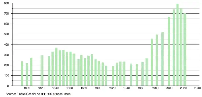 - ↑ Fiches Insee - Populations de référence de la commune pour les années 2006, 2007, 2008, 2009, 2010, 2011, 2012, 2013, 2014, 2015, 2016, 2017, 2018, 2019, 2020, 2021 et 2022.