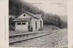 - ↑ Sans habitation pour un chef de gare ; un employé, logé dans la commune, venait sur place lors des passages du train pour distribuer les billets et enregistre les marchandises.