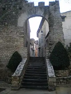 Trois portes sont aménagées: la porte de la Font[13] vers le nord-est, la porte Neuve vers le nord-ouest et le portal biaisar[14] au sud. Il existe bien une quatrième porte, également conservée, qui ouvre sur l'actuelle esplanade par la ruelle Georges-Jean Girvès, mais elle n'était pas destinée aux habitants du village car elle était privée (et fut plusieurs fois murée sous la pression des consuls du village).