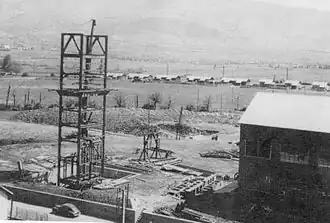 Le chevalement en construction.