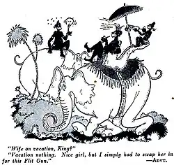 Dessin de presse du Dr SeussEn 1927, le caricaturiste américain Dr Seuss publie dans le magazine Judge un dessin humoristique mentionnant la marque Flit. Remarqué par un cadre de Flit, ce dessin lui vaut d'être embauché pendant 17 ans pour la publicité de l'entreprise[1].