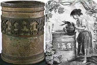 Le dessin de Valeriano confirme qu'il s'agit bien du même putéal exposé au Victoria & Albert Museum de Londres. Autrefois situé au Musée provincial de Tolède, il a disparu, puis réapparu au Musée de South Kensington (prédécesseur du Victoria & Albert Museum)[a].