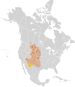 - ↑ Terme équivalent français trouvé dans le document commun Service canadien de la faune / U.S. Department of the Interior Fish and Wildlife Service « Un partenariat entre le Canada et les États-Unis, la conservation des espèces transfrontalières »