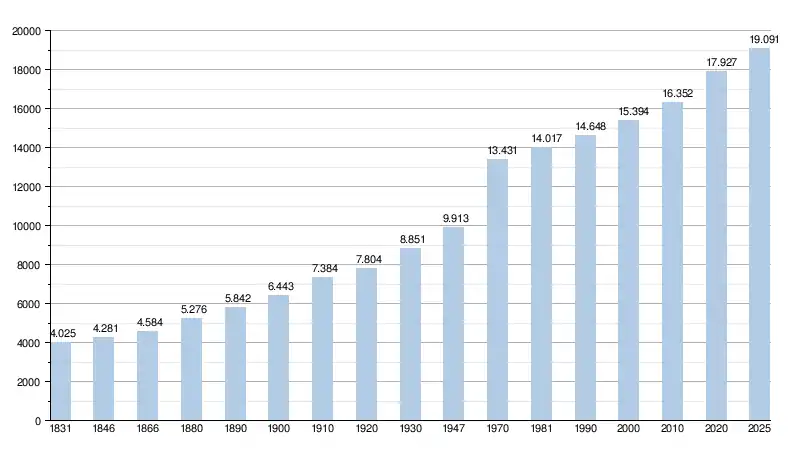 - Source : DGS - Remarque: 1831 jusqu'à 1981=recensement; depuis 1990=nombre d'habitants chaque 1er janvier[4]
