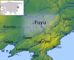 À la fin de la dynastie des Han orientaux, v. 220, Gongsun Du, un seigneur de guerre chinois dans la province du Liaodong, aida les Puyŏ à contrer les Xianbei au nord et les Koguryŏ à l’est. Après avoir décimé la famille de Gongsun le royaume des Wei envoya Wuqiu Jianpour attaquer Koguryŏ. Une escouade conduite par le gouverneur de la commanderie de Xuantu fut bien accueillie par les Puyŏ.