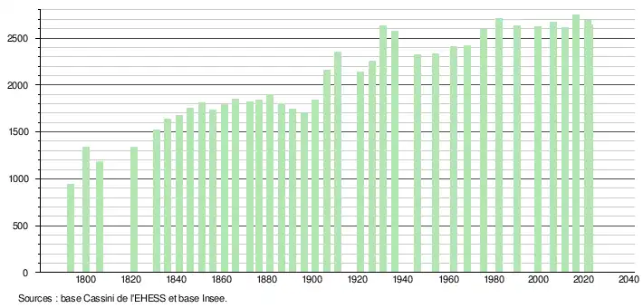 - ↑ Fiches Insee - Populations de référence de la commune pour les années 2006, 2007, 2008, 2009, 2010, 2011, 2012, 2013, 2014, 2015, 2016, 2017, 2018, 2019, 2020, 2021 et 2022.