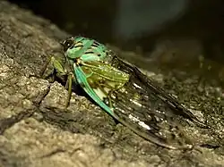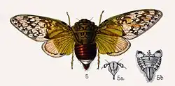 - 1 2 3 Distant, W. L. 1912. Homoptera, Fam. Cicadidae, Subfam. Cicadinae. Genera insectorum (V. Verteneuil & L. Desmet, Bruxelles), Fascicule 142, pp. 1–64. pls. 1–7. (texte integral)