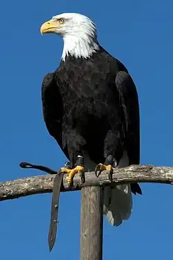 Le pygargue à tête blanche est l'oiseau national des États-Unis. Il est l'un des symboles les plus connus du pays et apparaît sur la plupart des sceaux officiels, y compris sur celui du président américain. Il a été choisi le par le Congrès continental : il est représenté tenant des flèches et une branche d'olivier entre ses serres[49].