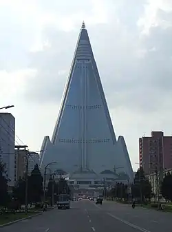 - L'hôtel Ryugyong, un gratte-ciel de 330 mètres, commencé en 1987 et achevé en 2012.