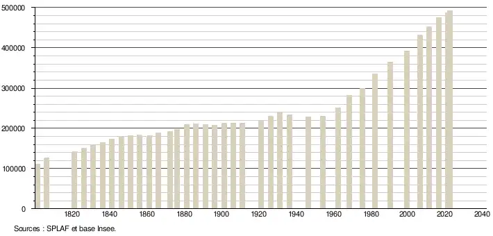 - ↑ Population municipale de référence en vigueur au 1er janvier 2025, millésimée 2022, définie dans les limites territoriales en vigueur au 1er janvier 2024, date de référence statistique : 1er janvier 2022.