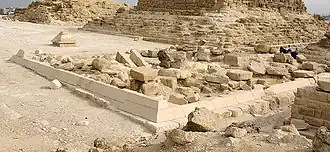 Cette pyramide a livré le deuxième plus ancien pyramidion connu après celui de la pyramide rouge à Dahchour. Il est en calcaire fin de Tourah et présente une face inférieure convexe afin de lui procurer une plus grande stabilité au sommet de la pyramide. Ce monument est identifié par son découvreur à la pyramide subsidiaire du Ka bien que ce type d'édifice cultuel ait toujours été placé à l'intérieur du péribole de la pyramide principale d'un complexe pyramidal.