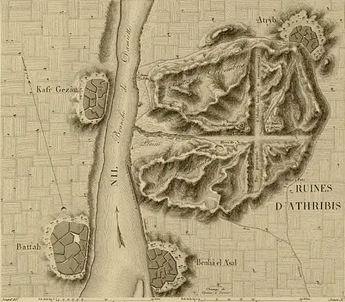 Cette pyramide, avant sa disparition sous la ville moderne de Banha, était la plus septentrionale des pyramides d'Égypte.