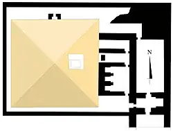 D'une base carrée de vingt-et-un mètres de côtés, la pyramide était constituée d'un noyau de trois degrés élevant le monument achevé en pyramide à faces lisses, à une hauteur de vingt-et-un mètres. L'inclinaison des pentes du monument était de soixante-trois degrés.