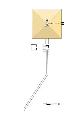 Bien que l'explorateur anglais John Shae Perring dît avoir observé des blocs de pierres du parement, aucun ne subsiste aujourd'hui. La pyramide avait à l'origine une base de 78,60 mètres (150 coudées) et une hauteur de 52,40 mètres (100 coudées) correspondant aux dimensions de la plupart des pyramides à textes[3].