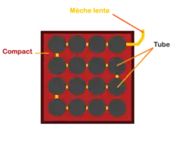 - la combustion se transmet de tube en tube. Chaque tube part l'un à la suite de l'autre.