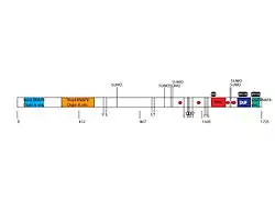 L'interaction de la protéine QSER1 avec SUMO a été notée dans de nombreuses études portant sur le protéome[28],[29]. Des sites SUMOylation prévus ont été trouvés dans la protéine QSER1. Des sites de SUMOylation hautement conservés apparaissent avec la séquence MKMD à l'acide aminé 794, VKIE à 1057, VKTG à 1145, LKSG à 1157, VKQP à 1487 et VKAE à 1492[30].