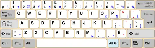 - les francophones ont utilisé un clavier QWERTY adapté pour le français (illustration ci-contre) ;